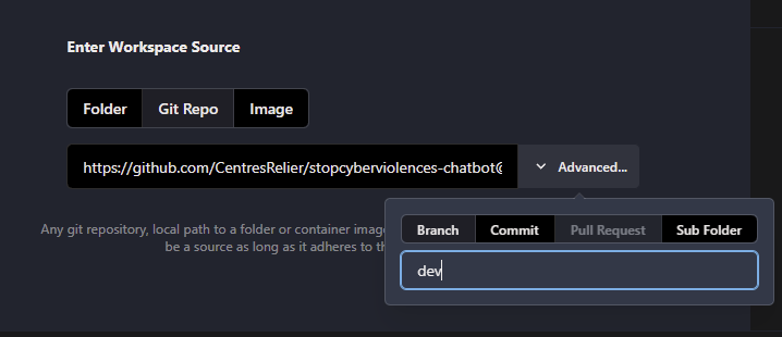 devpod up git@github.com:CentresRelier/stopcyberviolences-chatbot@dev
